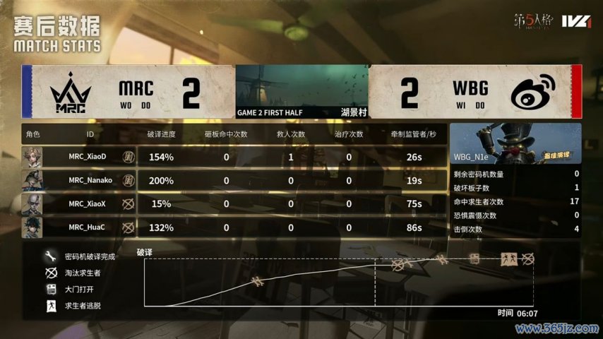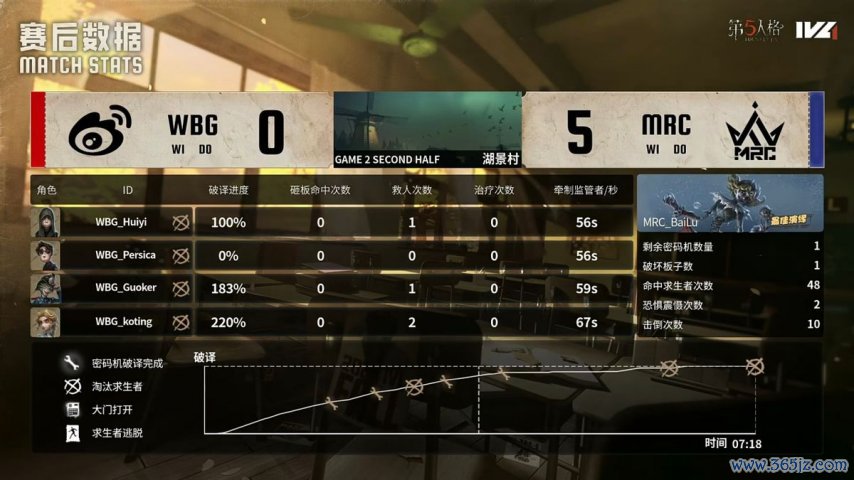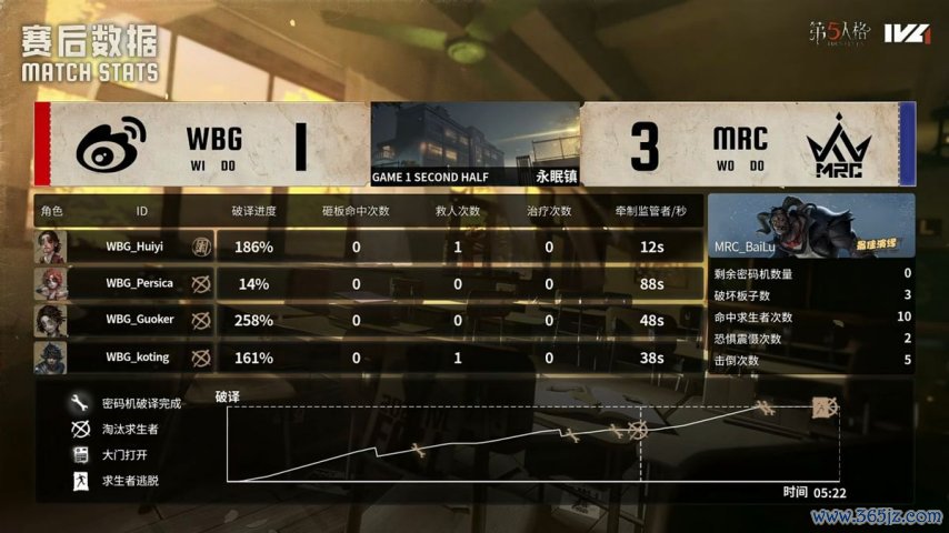 北京WBG的求生者选拔了盲女、古董商、野东说念主、演义家(BAN歌剧演员、时空之影);MRC的监管者BaiLu选拔了杂货商。(BAN“法罗女士”、征象学家、“脱逃内行”、哽噎懦夫)